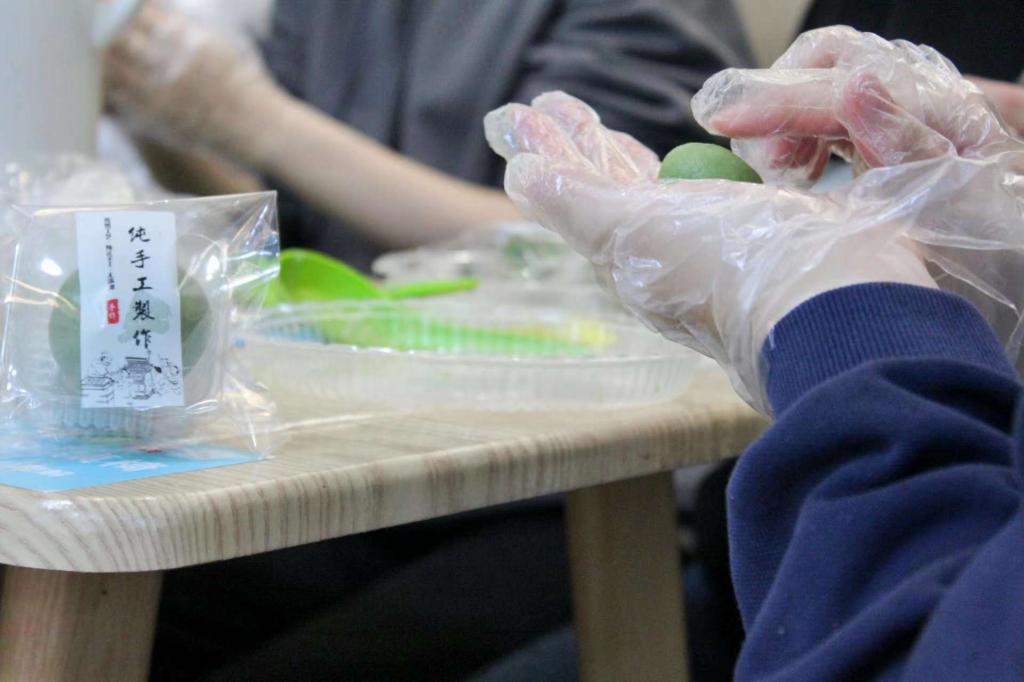 在和煦的午后,青团制作活动如火如荼地开始了。微风拂面,艾草的清香充盈在鼻息之间,活动主持人首先讲解了清明节的来历和风俗习惯,与大家分享清明节青团的历史小故事,随后仔细讲解制作方法,分好小组并分发材料.同学们纷纷跃跃欲试,迫不及待地想要做出可口的青团。同学们围坐在桌子旁边,挑选了自己喜欢的馅料,专心致志地制作青团,在青团粉中加入适量温开水,揉到不粘手的时候停止加水,然后反复揉搓成青绿色的面团,再将拌好的糯米团里包裹进豆沙馅,揉搓成一个圆球状的糕点。这样制作出来的青团不甜不腻,还带有清淡芬芳的青草香气。经济学院2204曹莹莹同学兴奋地说:“从来没有制作过这些传统食物,现在青团都是外面买的,借这次机会,不仅锻炼了动手能力,还深入了解了与青团相关的历史和文化。”