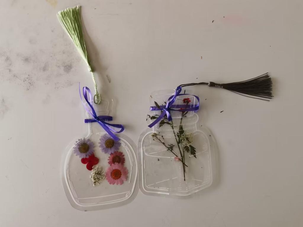 随后,志愿者们还通过一对一手工教学,与心智残障青少年们一起制作干花书签。志愿者们带领学员们选取花材、构思设计,然后依据选择进行搭配制作,欢乐的氛围充满着整个活动室。押花非常考验耐心与细心,为了不弄坏手里的花,学员们都小心翼翼地操作,志愿者们在一旁耐心鼓励与帮助,整个现场呈现出一种和谐友爱的氛围。红色的玫瑰花书签让人眼前一亮,而粉色樱花搭配上透明的书签则让人联想到心中最纯洁的愿景。完成手工后,学员们欣喜地看着自己的作品,纯真阳光的脸上洋溢着满满的笑容。
