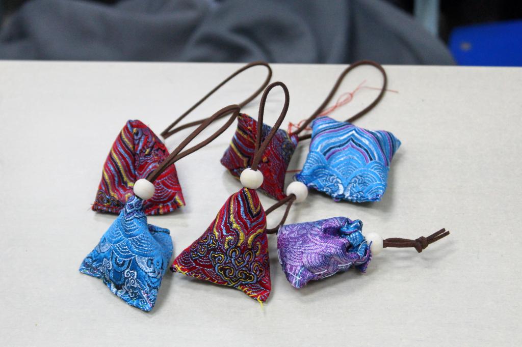 活动伊始,主持人与在场同学们共同学习了端午节的历史和由来,共同探讨端午节家乡的风俗习惯,现场氛围温馨融洽。随后,同学们将桌上摆放的五彩绳和香料等材料整理有序,并通过团队协作,精心制作出一件件色彩绚丽、独具匠心的五彩绳手串和香囊。在寄语环节,同学们纷纷写下对家人、朋友的节日祝愿:“愿端午安康!”“祝一举高‘粽’,学业有成!”“愿生活如粽子般甜甜蜜蜜!”这些温馨而真挚的寄语,不仅承载着同学们对中华优秀传统文化的深厚情感,也饱含了对幸福生活的无限憧憬和美好期待。在展示过程中,同学们互相赠送五彩绳和香囊,共同感受节日的温馨与文化的魅力,现场欢声笑语不断。