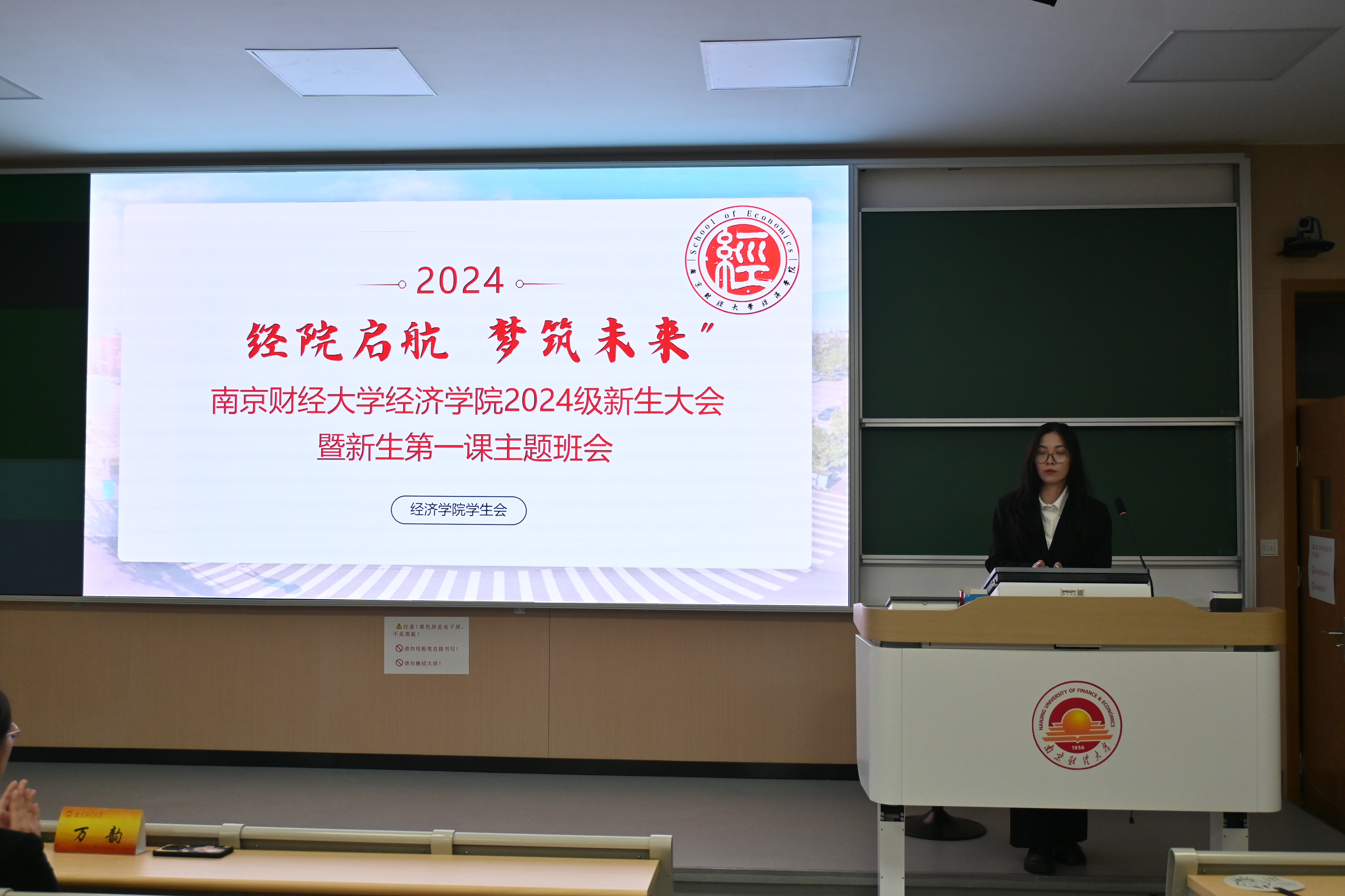 新学期,崭新气象,又一届大一新生满怀着期待与憧憬踏入大学之门,开启全新生活之旅。9月3日晚,经济学院于博观楼201隆重举办 “经院启航,梦筑未来”2024级新生大会,旨在助力新生更好地适应新环境中的学习与生活,更为深入地了解经济学院及院属学生组织,经济学院党委副书记贾亦璞老师、2024级新生辅导员张闻老师、学院学生会与辩论队成员以及2024级全体新生共同参与此次大会。