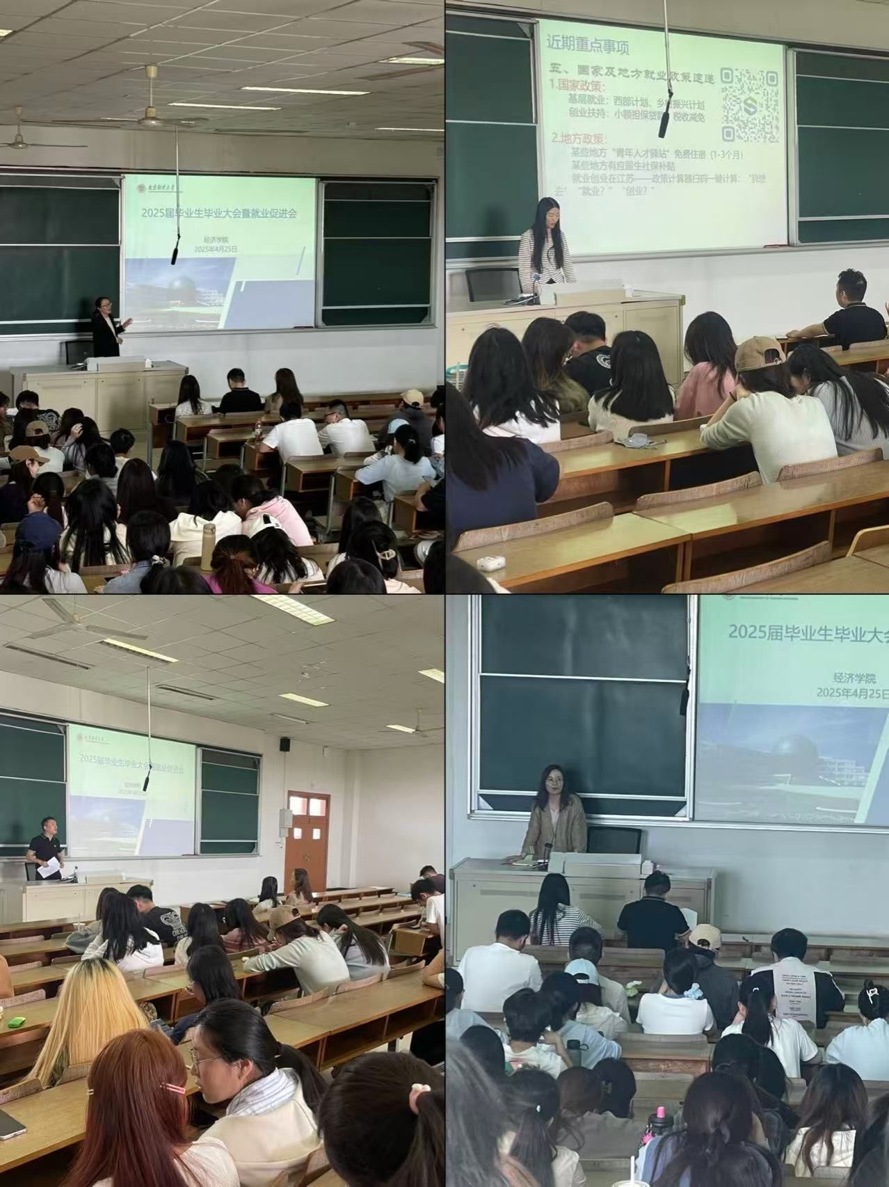 为深入贯彻落实国家“稳就业”“保就业”决策部署,切实做好毕业生就业指导与服务工作,引导毕业生树立正确的成才观、职业观、就业观、择业观,4月25日下午,经济学院在博观楼JB301开展2025届毕业生就业促进会。学院党委副书记贾亦璞、辅导员老师梁少颖、潘怡、张闻和全体2025届毕业生参加了会议。