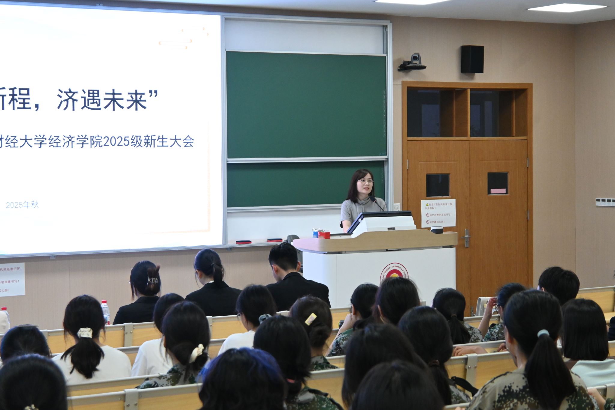 金秋送爽,万象更新,又一届大一新生怀揣着梦想与期待步入校园,开启人生崭新的大学篇章。9月2日晚,经济学院于博观楼201教室举办“经启新程,济遇未来”2025级本科生新生大会,学院党委副书记贾亦璞老师、2025级辅导员梁少颖老师、学院学生组织相关成员以及2025级全体本科新生参与本次大会。