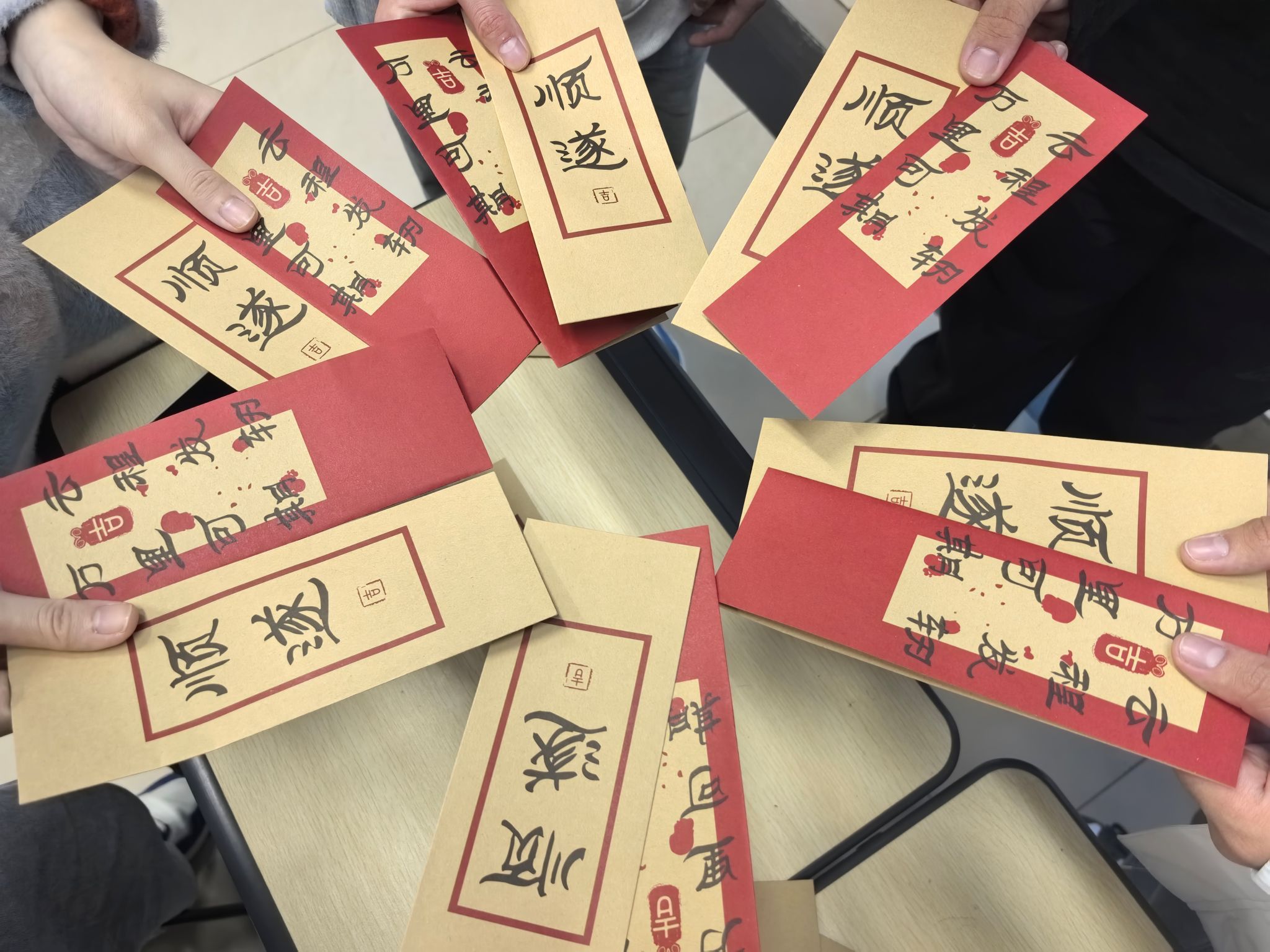 接下来,活动还特别设置了“纸短情长”与“贺卡寄情”环节,同学们现场给家中的长辈撰写了深情的家书,信中的一字一笔尽显对长辈的感恩与思念;同时,大家亲手制作贺卡,向退休教师送上最诚挚的祝福。这个环节彰显了中华民族爱老敬老的传统美德,让大家对重阳节的文化内涵有了更深的理解。