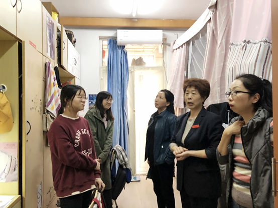 党委副书记袁怡琨、学工秘书尹海燕和2017级辅导员廖瑛一行走访了西苑3号站部分学生宿舍。袁书记深入了解了同学们的思想、学习和生活,对学生宿舍安全、卫生、文化建设等方面进行指导,提醒同学们要注意用电、饮食和财产安全。