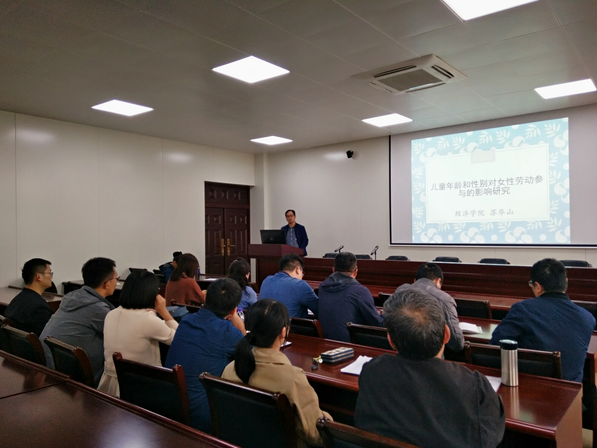 双周学术论坛第9次报告在德经楼307会议室举行。本次报告由苏华山副教授主讲,报告的主题是“儿童年龄和性别对女性劳动参与的影响研究”。本次论坛由黑料网