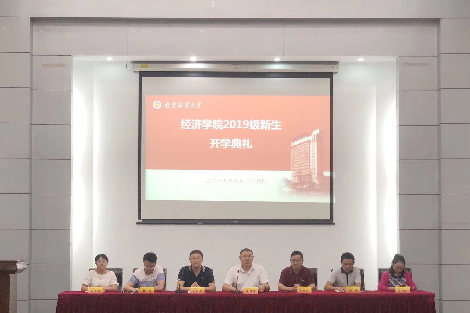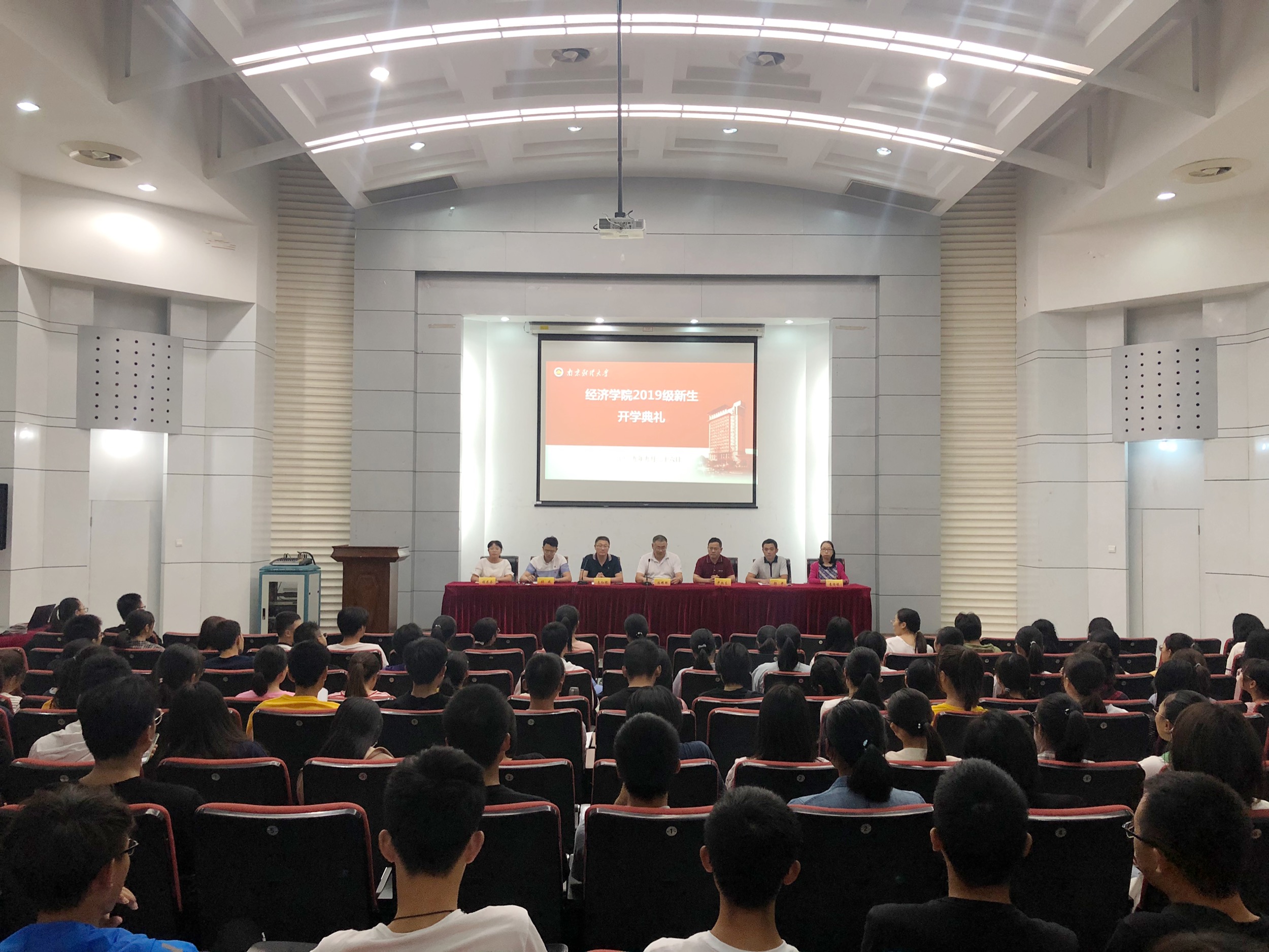 在德经楼报告厅隆重举行2019级新生开学典礼。院长朱红根,党委书记陈耀辉,党委副书记袁怡琨,副院长尹敬东、张成,院长助理韩中,统计系主任程恭品等老师,黑料网