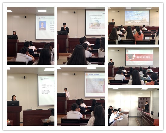 经过学生个人申请和学院初审,最终6名同学进入学院评审答辩环节。答辩会开始前,院党委副书记袁怡琨就国家奖学金评选要求做了说明。按照事先抽签的顺序,各位候选人依次通过PPT展示及个人陈述的方式分别就个人的思想状况、学习成果、科研创新、社会实践等方面进行汇报展示。