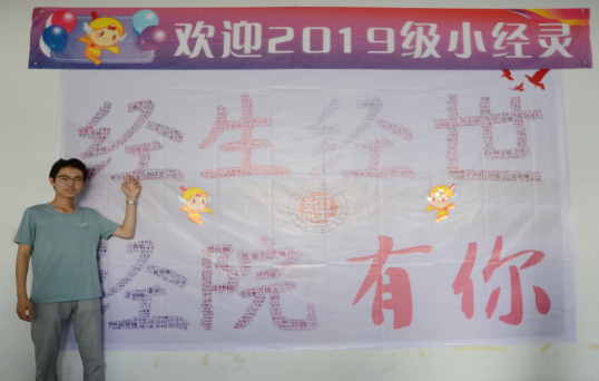 2019级六个班级全体学生的名字组成“经生经世,经院有你”的背景墙让新生一进校就有了强烈的归属感。新生们纷纷上前搜寻着自己的名字并在此拍照留念,每个人眼中都流露出欣喜。