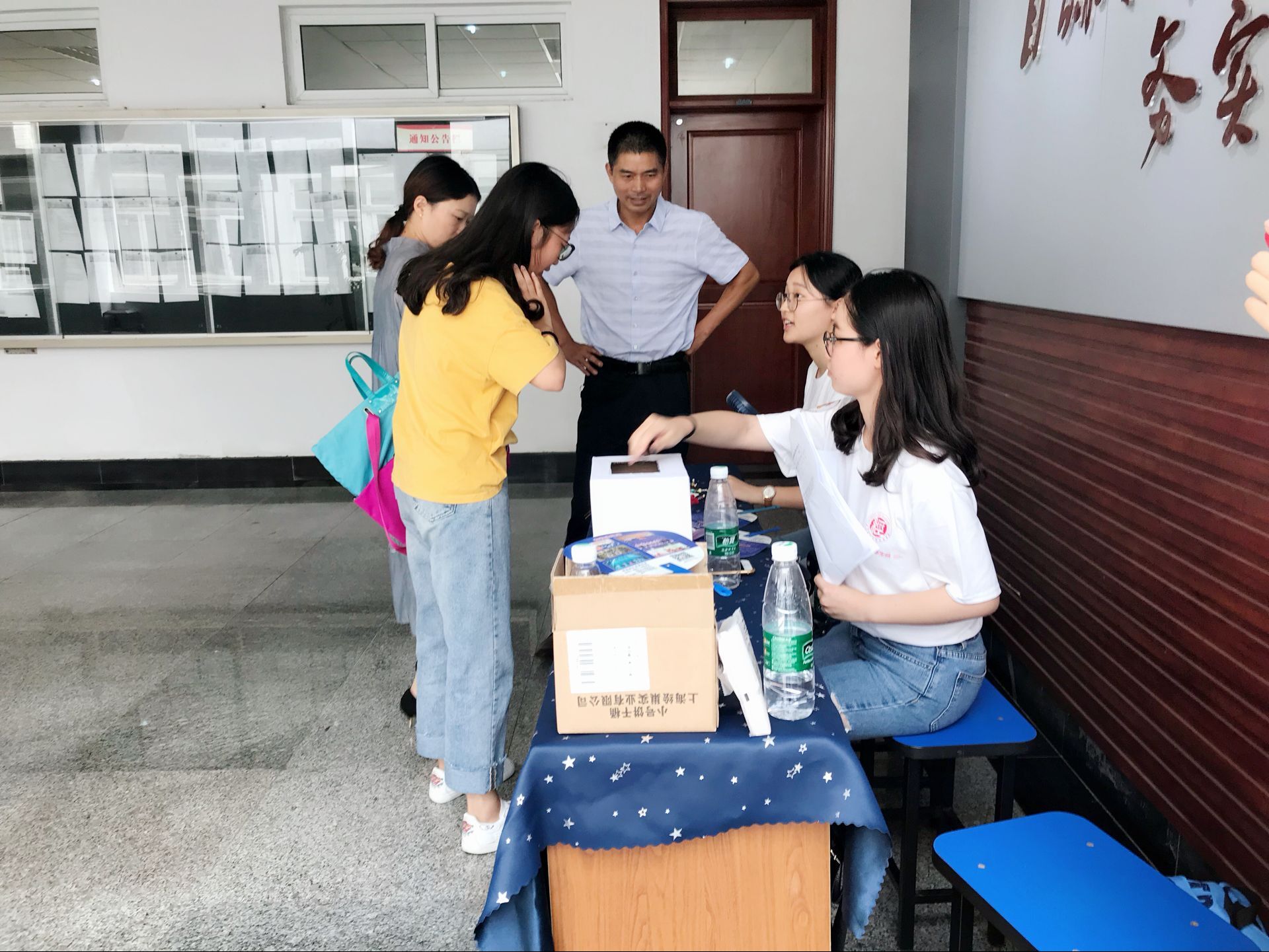 虽然时间尚早,但已有新生前来报到,德经楼三楼逐渐被忙碌的气氛包围,老师和志愿者们有条不紊地进行着一站式学籍注册,报到登记,发放资料,并邀请同行的家长参加下午的家长会。 报到处最为出挑的可能是志愿者装扮的黑料网