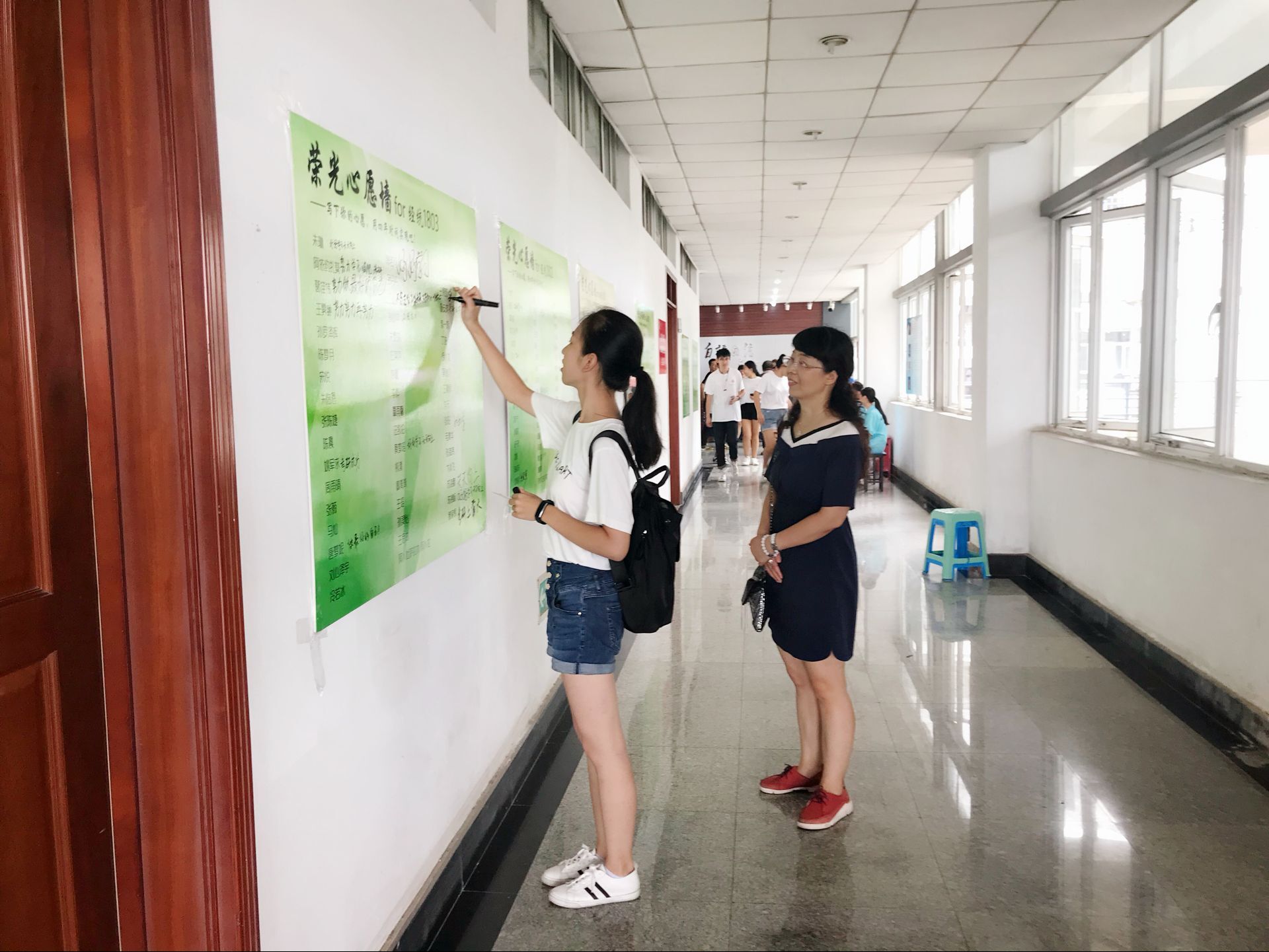学院的走廊处还张贴了一张张“荣光心愿墙”,怀着满腔热情和抱负新生们在自己名字后写下对大学生活的期盼。大部分新生的心愿还是希望自己能在大学好好学习,充满正能量:“沉迷学习日渐消瘦”、“吃遍南财附近的火锅店”“简单快乐地生活,单纯坚定地追梦”。