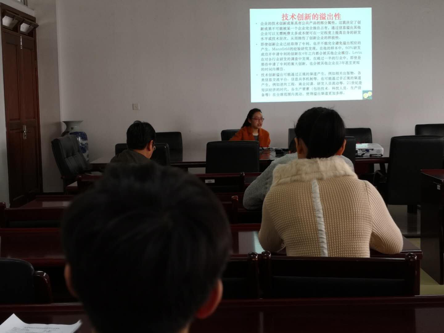 统计系教师张艳芳博士就“企业技术创新策略选择”研究就行了报告。本次报告由学院副院长尹敬东教授主持。