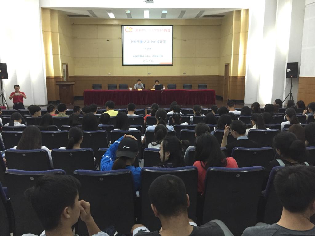 9月26日下午,应我院邀请,我校计划统计专业8201班校友、中国质量认证中心体系认证部部长、高级统计师柴越博在我校仙林校区管理学科楼报告厅作了题为“中国质量认证中的统计学”的讲座。讲座由江苏省教学名师王庚教授主持。学院部分教师、统计专业学生聆听了讲座。