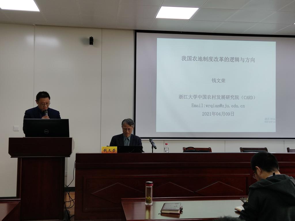 4月9日下午,在德经楼307会议室,浙江大学求是特聘教授、浙江大学中国农村发展研究院院长钱文荣教授应邀为我院师生作了题为“中国农地制度改革的逻辑与方向”的学术报告。报告由院长朱红根教授主持,学院部分教师和研究生参会。