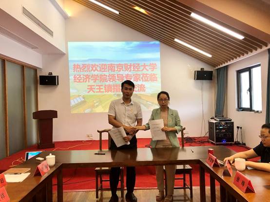 学院党委陈耀辉书记向天王镇领导介绍了经济学院发展情况,并就支部共建发言。陈书记指出通过支部共建、建立党建联盟,以高质量党建促进高质量发展。希望在两个支部的共同努力下,通过定期交流、彼此补位等互动模式,推动两支部党建、业务工作从以往的垂直、独立、内循环的工作模式向横向、开放、命运共同体的工作模式转变,扩展乡村为民服务内沿、带动学生实习就业,形成多元主体耦合式参与的党建联合体,从而实现“党建资源共享、基层组织共建、高质量发展共赢”的目标。