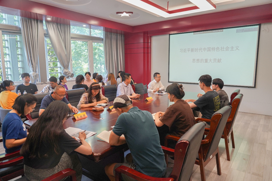 思想指引方向,精神凝聚力量。6月12日下午,在仙林校区德经楼329会议室,党委常委、宣传部部长、经济学院本科生第一学生党支部政治辅导员石奇讲授“学习习近平新时代中国特色社会主义思想的重大贡献”主题教育专题党课。党委宣传部副部长龚莉红、秦韶华和支部全体党员,经济学院本科生第一学生党支部书记梁少颖和全体学生党员参加学习。党课由经济学院党委书记张圣兵主持。