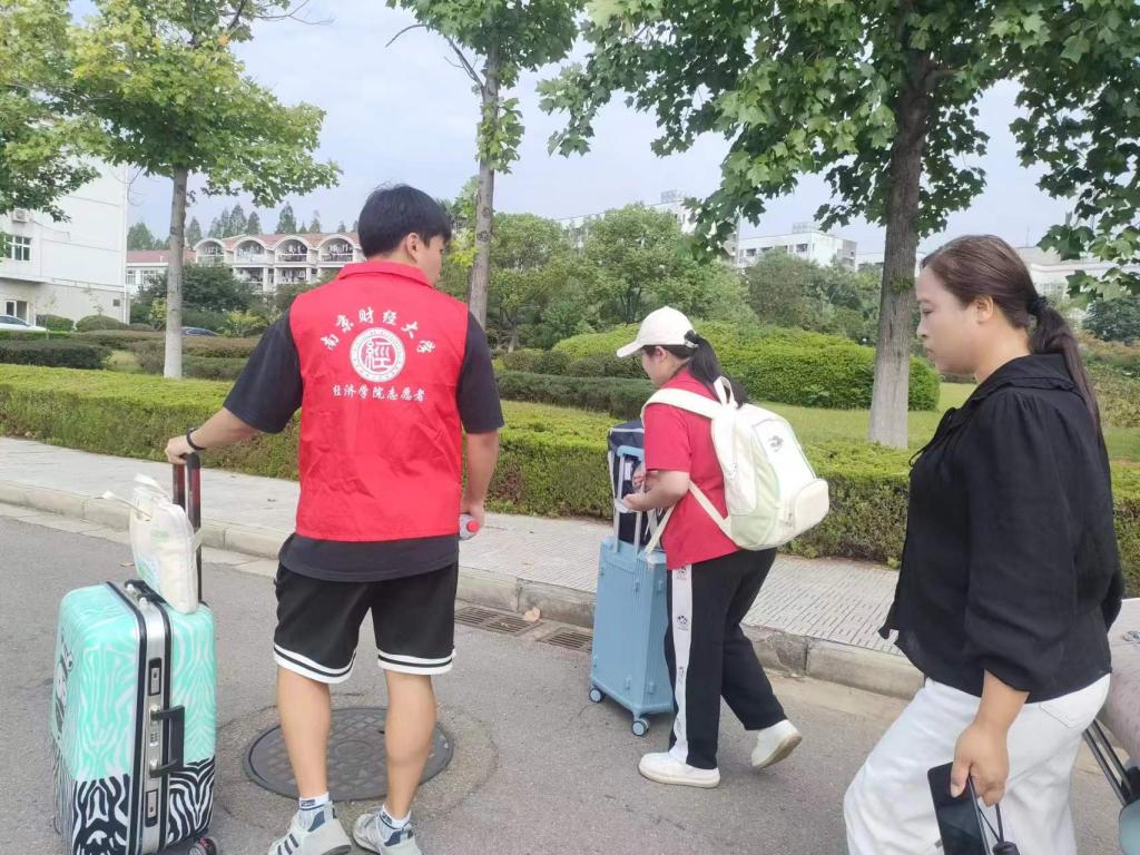 手把手来,为“新”分忧。迎新现场,各项工作有序开展。为保障迎新工作的顺利开展,志愿者们早已就位,投身志愿服务、后勤保障工作,咨询答疑、指路引导、秩序维护、行李转运……处处涌现着学院师生党员、志愿者们的身影,努力为初入校园的新同学提供全方位、全天候、全过程的服务与支持。