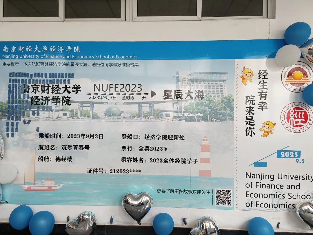 学院设置了从南财经济学院启航驶向星辰大海的“逐梦青春号”船票展板