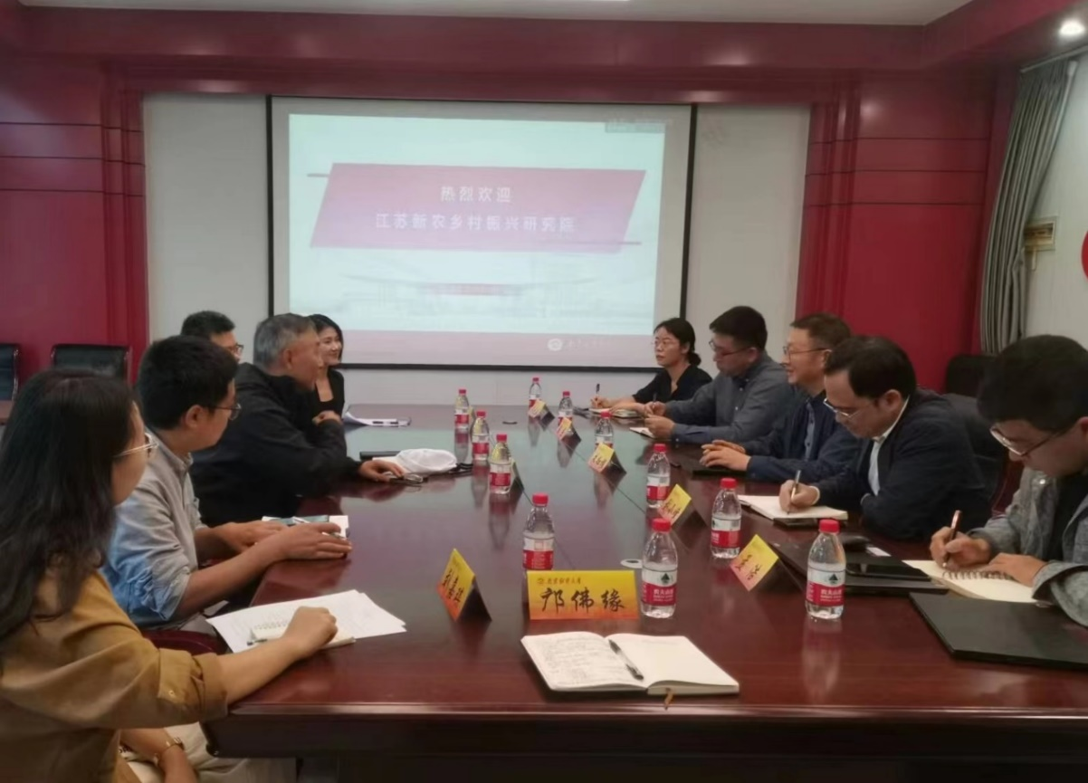 10月13日下午,江苏新农乡村振兴研究院理事长潘松涛、副院长秦继东、副院长陈媛、咨询服务部王明珊和刘嘉琪一行来我院调研交流,座谈会在我院329会议室举行。经济学院院长、绿色经济发展研究院院长朱红根,经济学院副院长刘小峰、院长助理陈杰,绿色经济发展研究院副院长周元春、副院长孟浩,经济学院青年教师邝佛缘参加座谈会。座谈会由朱红根院长主持。