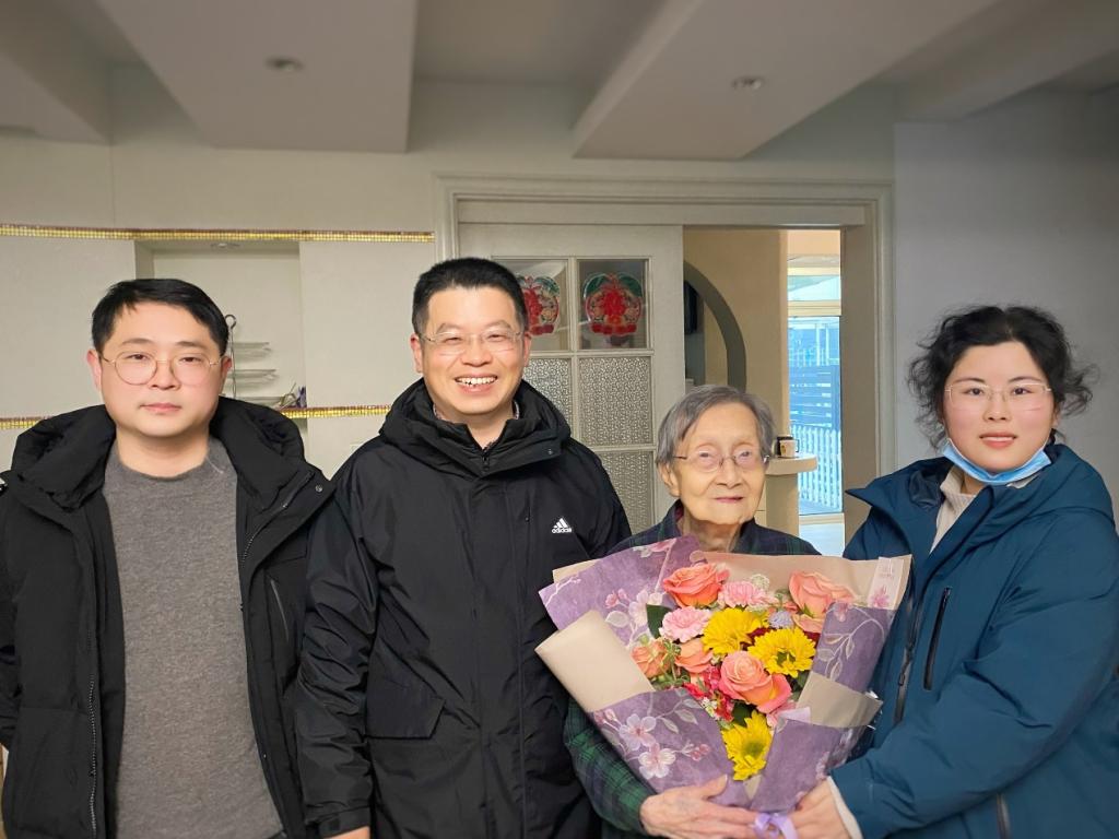 2024年2月20日上午,经济学院党委书记张圣兵教授、经济学院统计系副主任、民建南京财经大学基层委员会副主委李庆海教授、经济学院办公室副主任吕张怡一行前往江宁区看望慰问99岁高龄的统计系退休教师沈兑老师,向她致以新春的祝福和学院的问候。