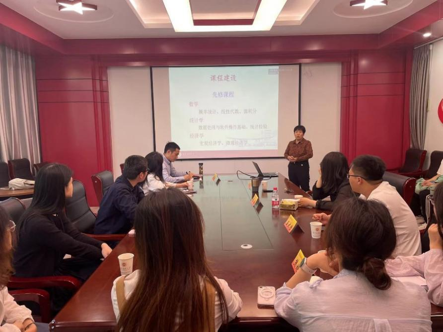 2024年5月15日下午,我院在德经楼329会议室成功举办“名师名课示范观摩”活动,此次活动邀请了江苏省教学名师郭存芝教授及其课程团队张梅、王大哲老师带来题为“《计量经济学》课程说课”的教学经验分享。本次活动由学院副院长韩中主持,部分青年教师和学生参加了此次活动。