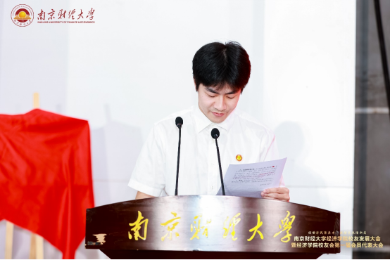 苏浚琪校友宣读《南京财经大学经济学院校友会管理条例(草案)》