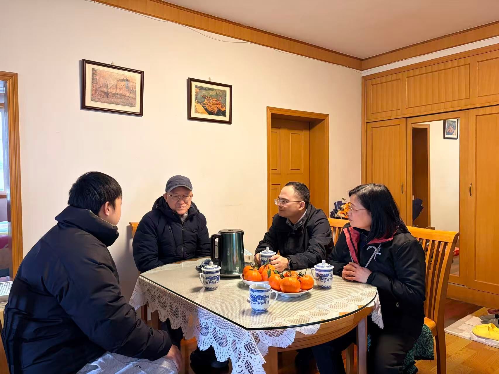 院长刘小峰教授一行,前往退休教师何干强教授家中开展走访慰问活动,随行的有经济学系主任陈博欧副教授、经济学系教师黄雪琴副教授、学院办公室副主任吕张怡,向何老师致以新春的美好祝福和学院的深切关怀。