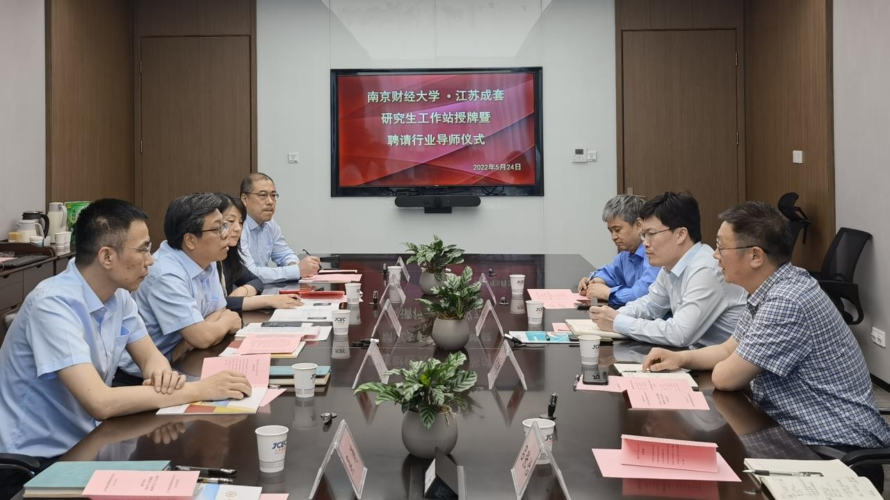 5月24日,我院开展访企拓岗促就业专项行动,学院领导带队走访江苏省设备成套股份有限公司,并为我校和江苏省设备成套股份有限公司联合建设的江苏省研究生工作站举行挂牌仪式;同时举办了我院专硕行业导师的聘任仪式。研究生院副院长杜修立、经济学院院长朱红根、经济学院副院长崔向阳,江苏省设备成套股份有限公司董事长黄旭、总经理陈海涛、副总经理章雅、我院研究生秘书吕张怡以及成套公司部分工作人员参加了挂牌、聘任仪式。
