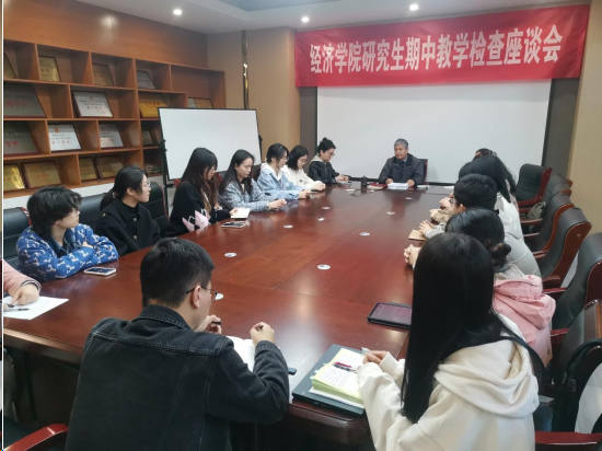 为加强研究生培养过程管理,听取研究生在学习和生活中的意见和建议,根据研究生院《关于开展2023-2024学年第一学期研究生期中教学检查工作的通知》的统一部署,11月8日上午10点,我院在德经楼323会议室召开了研究生期中教学检查学生座谈会。我院研究生秘书周靖文老师、研究生辅导员栾亮老师,以及各年级、各专业研究生代表参加会议。经济学院副院长崔向阳教授主持此次会议。