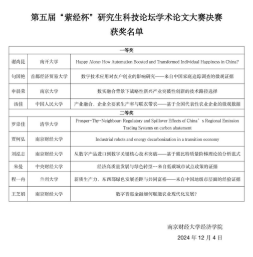 附:第五届“紫经杯”研究生科技论坛学术论文大赛决赛获奖名单