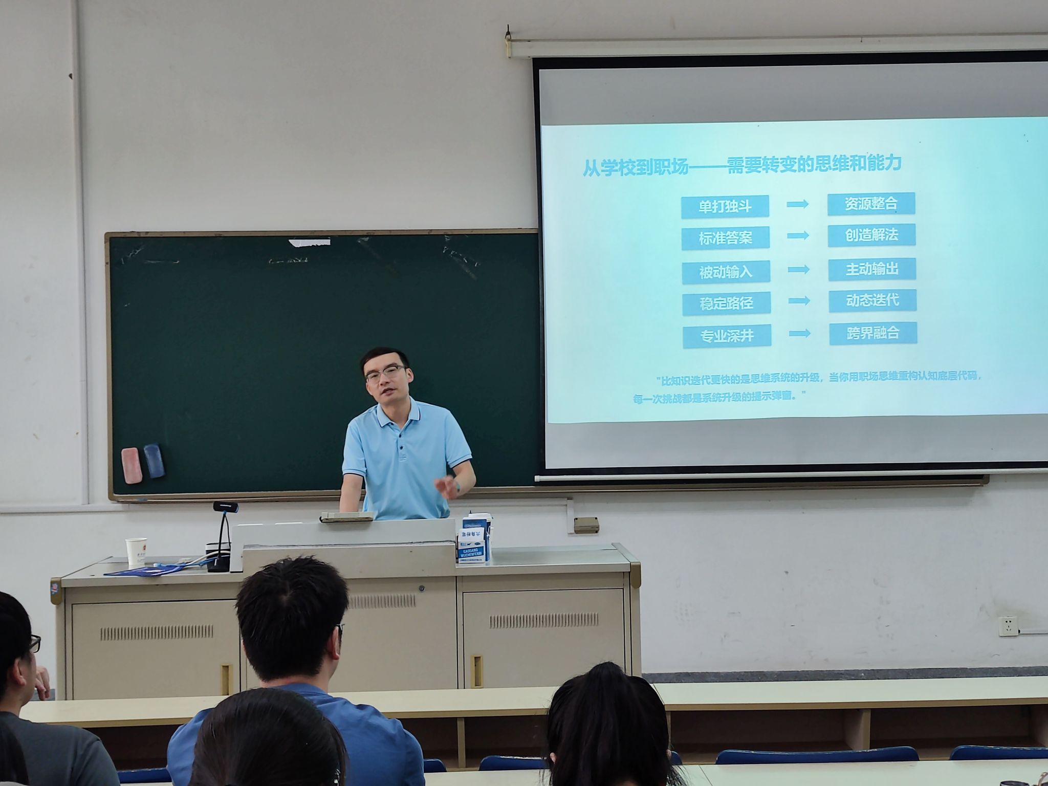 蔡万焕副教授率先分享了他在学术追求与职业选择方面的经验。他着重强调了自我定位的关键作用,鼓励学生积极进行自我的“投入产出分析”,以此了解自己是否契合学术道路。蔡老师坦言,读博之路并非坦途,要充分利用学校提供的平台,依靠自身努力不断前行。在清华博士后期间,他就是凭借清晰的自我定位和潜心科研,两年内成功发表12 篇论文。蔡老师以自身求学和职业发展经历为生动案例,深入浅出地阐述了如何通过持续学习和实践来认识自我、提升自我,同时着重强调了找准适合自己的职业赛道的重要意义。