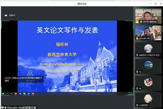 4月13日下午,新西兰林肯大学博士生导师马旺林副教授,在线上作题为“英文论文写作与发表”的学术报告。报告由经济学院统计系副主任李庆海副教授主持,经济学院师生及其他院校师生聆听了此次报告。